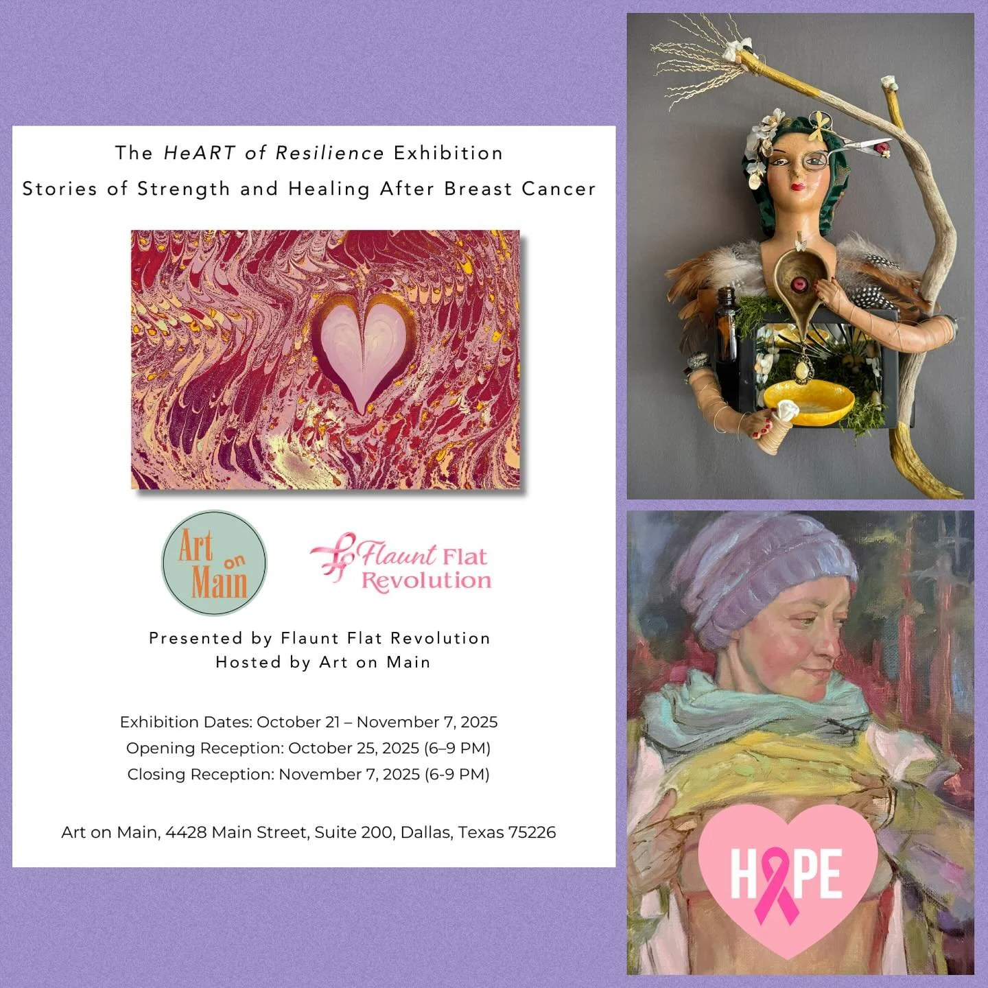 I’m so honored to have two of my works included in The HeART of Resilience: Stories of Strength and Healing After Breast Cancer, presented by @flauntflatrevolution and hosted by @artonmaindallas.